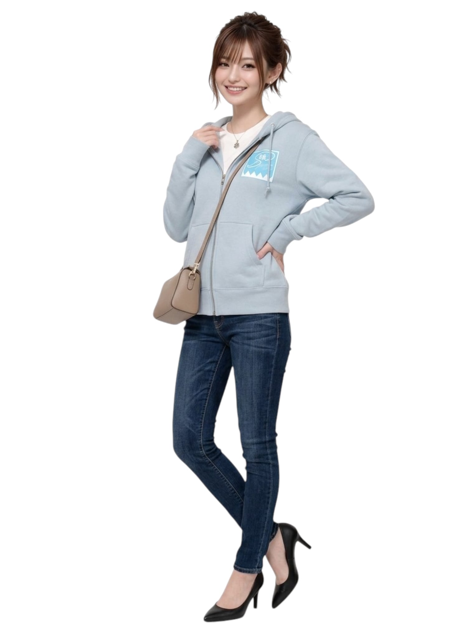 お出かけに: スキニーデニムにパンプスを合わせて、スタイリッシュな大人カジュアルに。